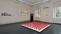 die Ausstellung als stilisiertes Wohnhaus gestaltet, in dem jeder Raum ein Thema beherbergte. Dabei waren die Rauminstallationen